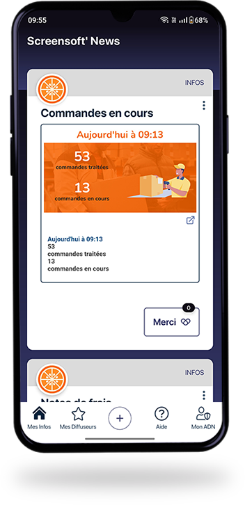 Avec l'application Screensoft' News sur leurs smartphones, vos clients peuvent maintenant être informés des meilleures offres dès la publication d’une nouvelle annonce sur vos écrans dynamiques, grâce à des notifications instantanées.