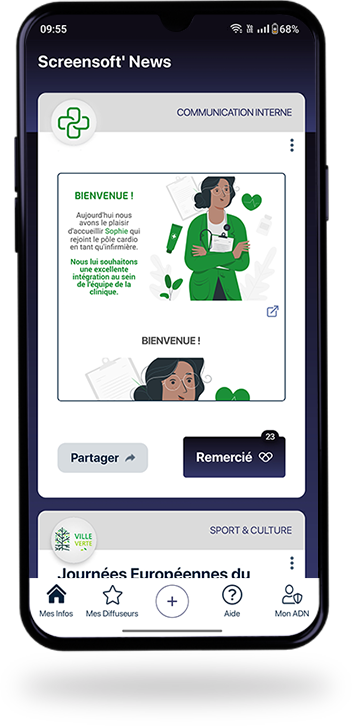 Avec l’application Screensoft’ News, partagez instantanément toutes vos actualités auprès de vos cibles et facilitez le partage de l’information citoyenne.