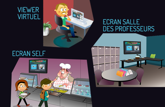 Alimentez le contenu de votre site Internet par le biais de vos écrans d'affichage dynamique ! Grâce à la mise en place d'un "écran virtuel" sur une page de votre site Internet (et/ou intranet), relayez l'information au sein de votre établissement ET sur Internet ! Vous évitez ainsi la double saisie d'information et une perte de temps conséquente !