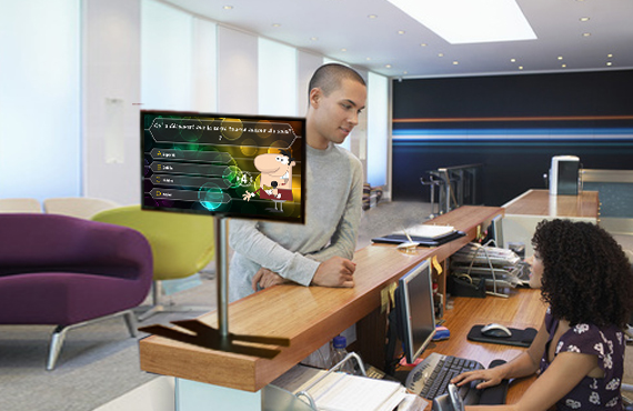 Alimentez vos écrans d'affichage avec des contenus ludiques pour divertir vos visiteurs (quizz, vidéos, météo, etc.).