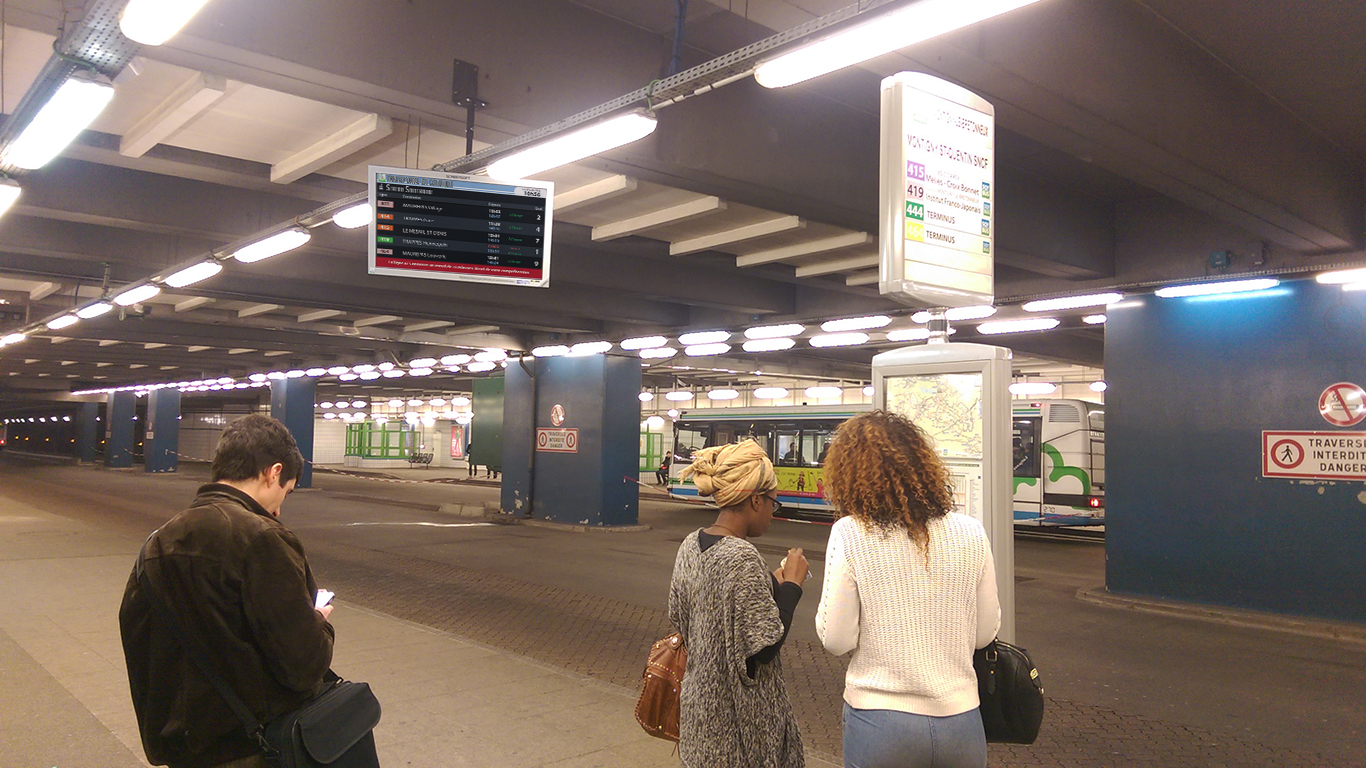 L'affichage des horaires de bus devait être lisible de loin et par tous, et laisser éventuellement l'espace pour un bandeau d'alerte en cas de besoin.