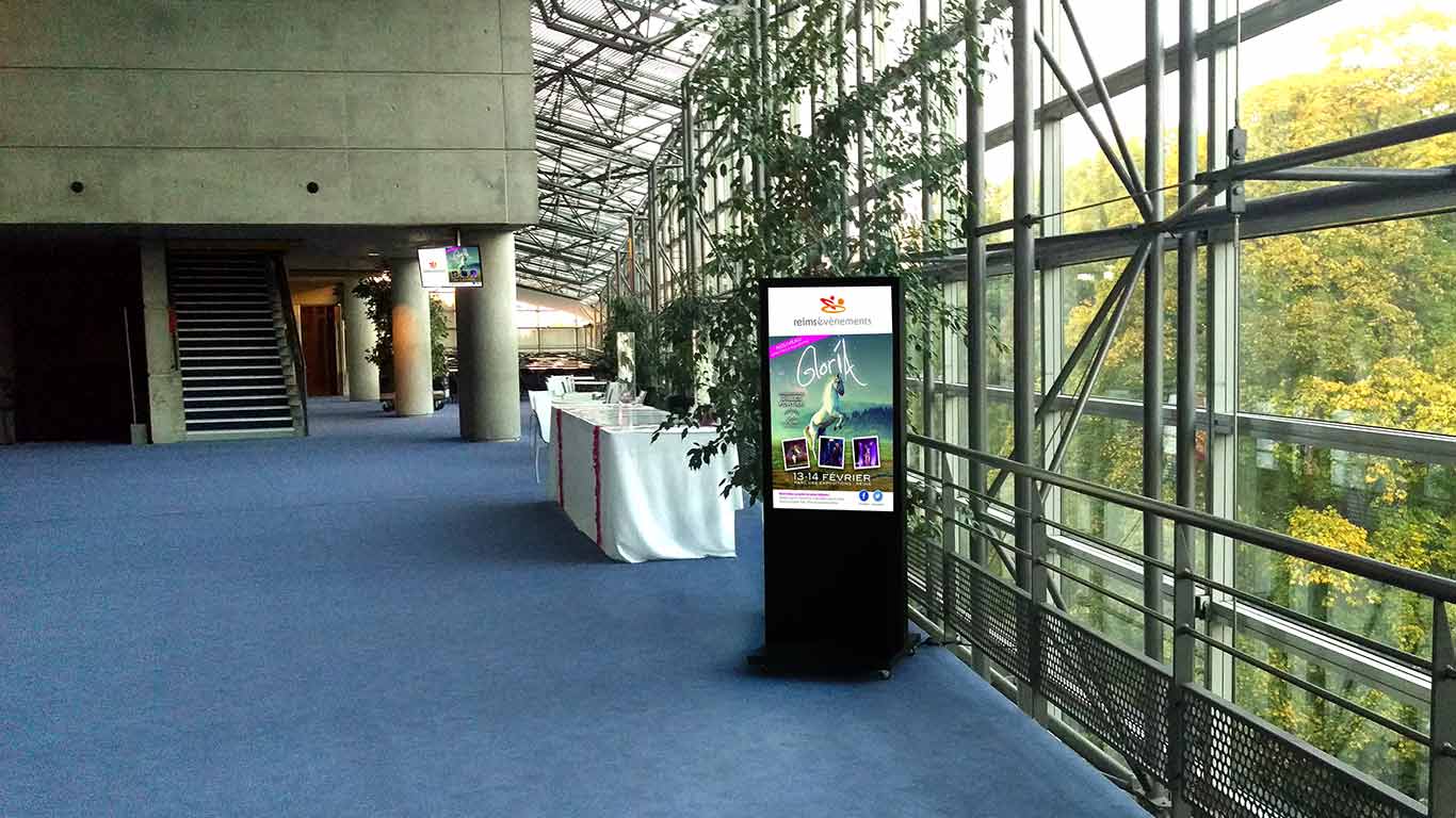 Reims Évènements a souhaité équiper ses différentes structures d'une solution d'affichage dynamique simple et performante pour dynamiser son accueil, améliorer les conditions évènementielles de ses visiteurs et communiquer davantage sur ses manifestions et ce qu'elles proposent. Pour le moment, 30 écrans ont été installés.